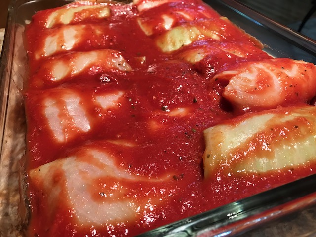 Note that you’ll have leftovers of the meat mixture. I roll the meat up in meatballs and cook in tomato sauce for 30 minutes.