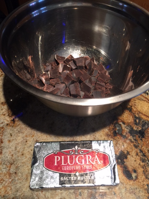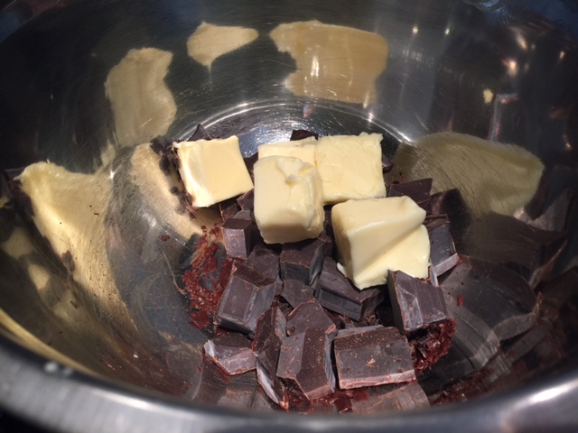 - Place the chopped chocolate in a microwave-safe bowl and microwave on medium power for 30 seconds. Stir and continue to cook for another 30 seconds. Allow to cool while proceeding with the following steps.