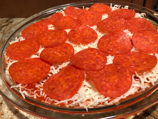 We were just going to order pizza while watching the “big game” since it was just the two of us, but then I decided to make the next best thing – pepperoni pizza dip!!