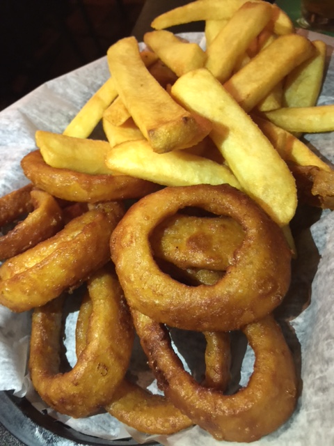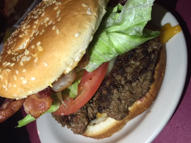 So Big Signature “BBQ Burger (see headline photo) – Angus beef, onion ring, caramelized onions with bacon, house made cheddar cheese and BBQ sauce
