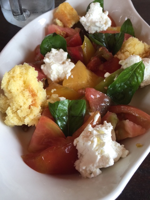 We started with libations crafted by friendly bartender Al, a Violet Spritz and a Chamomile Collins. Both were refreshing and welcomed on a warm evening on the restaurant’s new awning-covered patio.