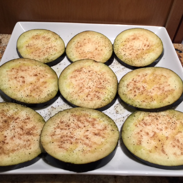 I try to abide by my #MeatlessMonday promise when I can and am always looking for ways to use more vegetables in my diet so this weekend, I found beautiful mauve round eggplants that I prepared two ways – meat-stuffed and vegetarian.