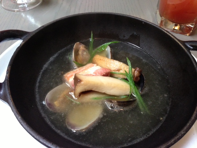 Another starter we had to have is the Clam and Pork Belly Soup ($11). I just love this idea and it really works. The perfectly-fatty pork belly, king oyster mushrooms and clams are served in a bowl where clean, earthy mushroom consommé is poured tableside. The soup is rich and flavorful and I look forward to savoring it again soon.