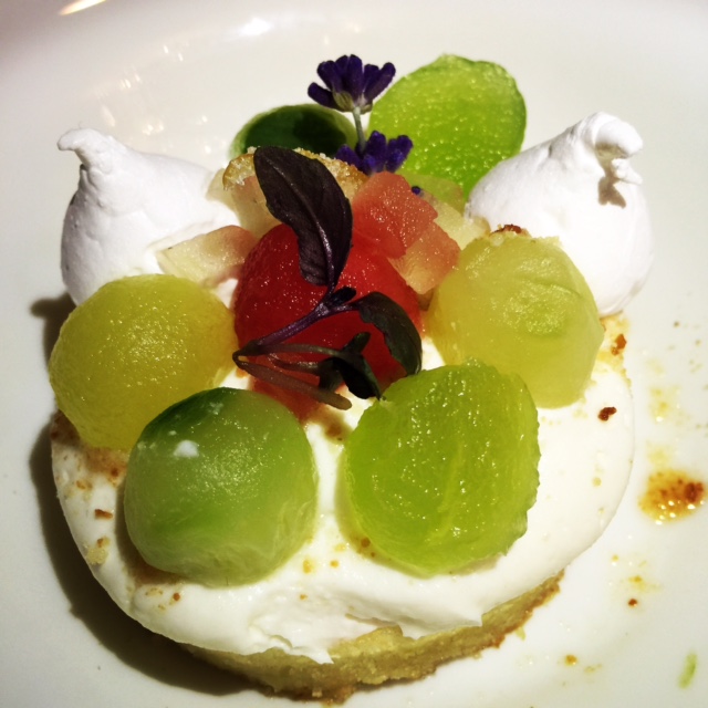 Chef Michael Carrino (Pig & Prince Restaurant & Gastrolounge) ended the meal with an elegant dessert of Lemon Sponge Cake, Goat Cheese Mousse, Lemon Meringue, Cucumber, Melon, Herb Flowers.