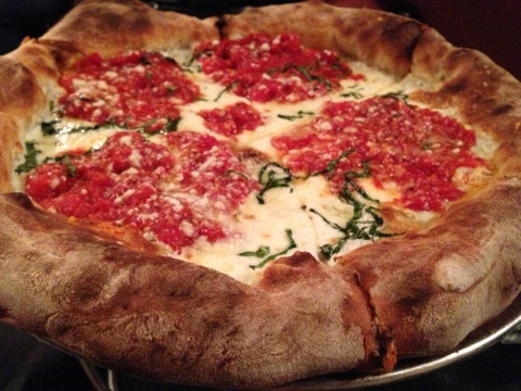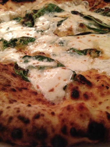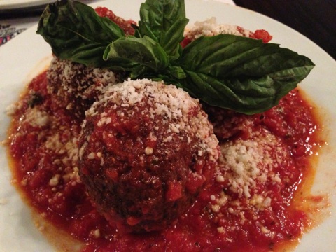While the breakfast items were delectable, we couldn’t pass up standard menu items like the fresh Mozzarella with Prosciutto, meatballs in Vodka sauce and a couple pizzas – the coal-fired Sweet Sausage Pizza and the wood-fired Fresh Basil Pie. The sausage pizza was topped with sausage, sweet peppers, tomatoes sautéed in garlic, homemade Mozzarella and basil leaves. The crust from the coal oven is crispy and beautifully-charred and the toppings work in perfect harmony. The white pizza with garlic-infused olive oil and fresh Mozzarella has basil leaves that get crispy from the 90-second visit in the wood oven – a sure winner.