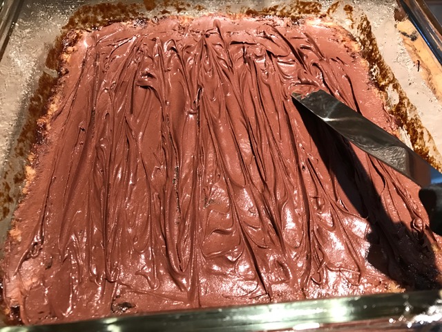 - Remove from oven and sprinkle the chocolate chips on top of the caramel, wait 2 minutes then spread gently with an offset spatula or a thin knife. Allow to cool completely then cut into bars.