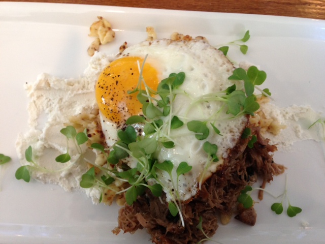 The menu is composed of small and large dishes and guests can choose between the Petite Tasting ($55 for any two plates from a selection of small and large dishes) or the Grand Tasting ($75 for any three dishes). The small dishes feature grains and fruits like the Sicilian blood oranges with saffron and the quinoa with victorian pineapple and poppy seeds. The large dishes feature organic scrambled eggs with Scottish smoked salmon, a dungeness crab omelet with peas and brie, a Swedish sandwich with slices of roast pork with fennel and harissa and a 45-day dry-aged New York Strip Steak with creamed spinach.